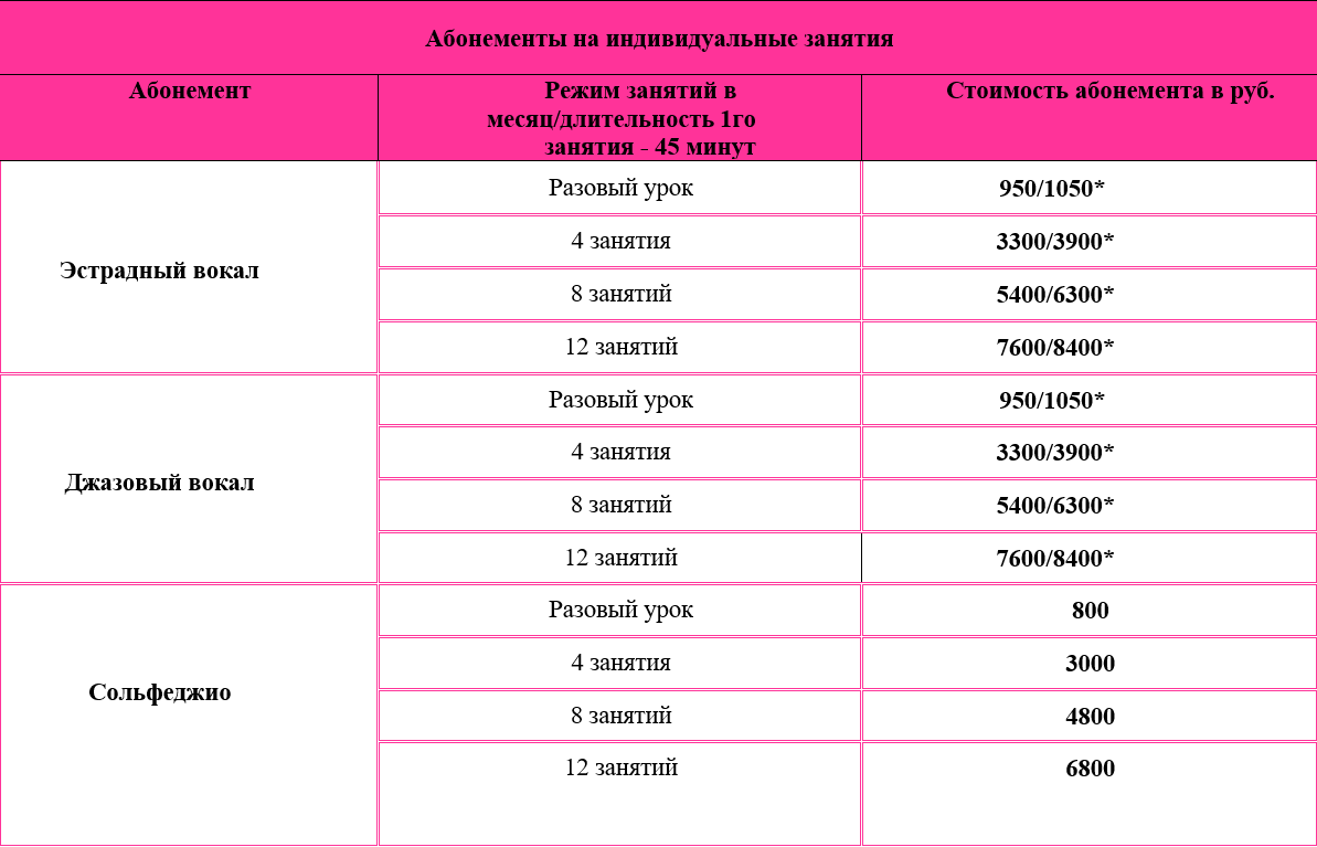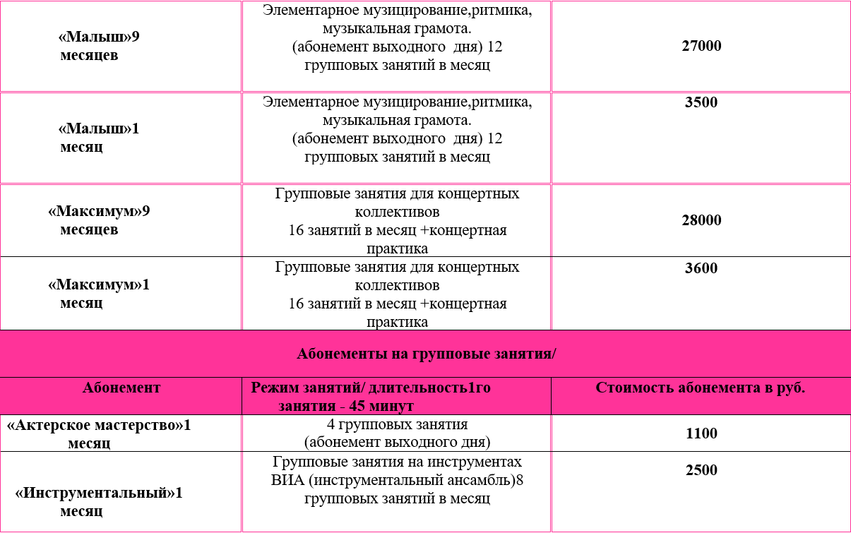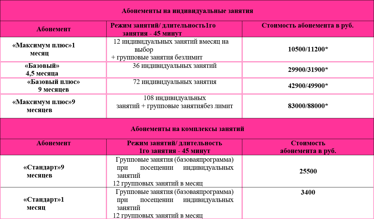 Вы можете приобрести абонемент на обучение по следующим программам: